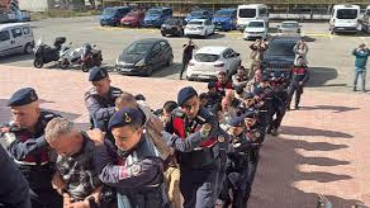 Jandarmada işlemleri tamamlanan 9 şüpheli adliyeye sevk edildi.